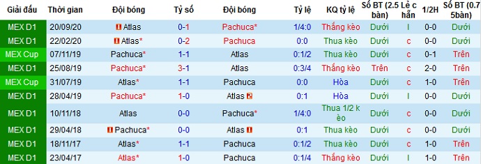 + Lịch sử đối đầu Pachuca vs Atlas