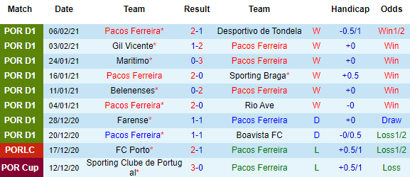 + Lịch sử đối đầu Pacos de Ferreira vs Portimonense