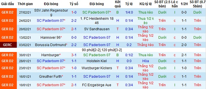 + Thống kê 10 trận gần nhất của Paderborn