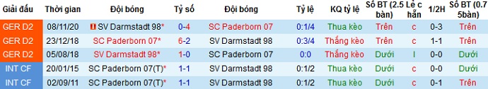 + Lịch sử đối đầu Paderborn vs Darmstadt