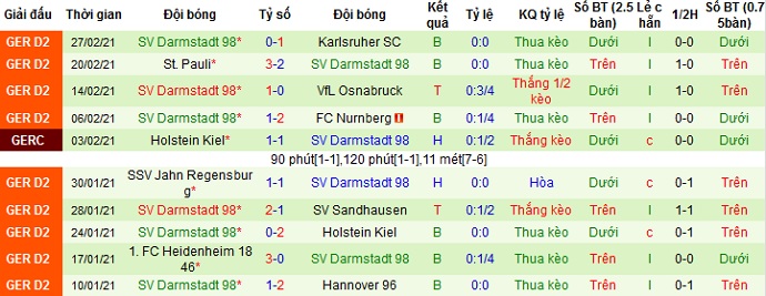 + Thống kê 10 trận gần nhất của Darmstadt