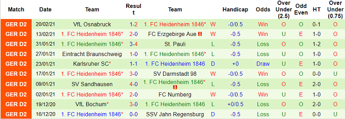 - Thống kê 10 trận gần nhất của Heidenheim