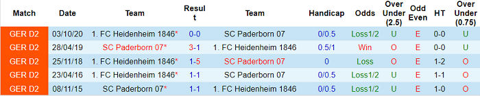 Lịch sử đối đầu cũng chỉ ra rằng: Paderborn không hề ‘ngán’ Heidenheim. Paderborn không thua cả 5 lần so tài trước đây với Heidenheim thuộc khuôn khổ giải hạng Hai Đức: thắng 2, hòa 3.