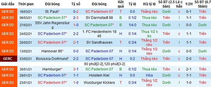 + Soi tỷ lệ kèo châu Á: Với lợi thế trên sân nhà, tuy vẫn đang đứng dưới đối thủ ở bảng xếp hạng nhưng Paderborn vẫn được đánh giá là đội cửa trên với kèo chấp đang là -0,25.