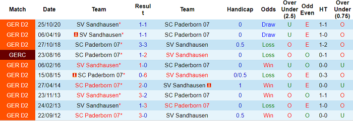 Những mùa giải gần đây, Sandhausen trở thành đối thủ đầy ‘khó chịu’ với Paderborn. Paderborn không thắng cả 6 màn so tài gần nhất với Sandhausen, tính trên mọi đấu trường. 3 lần đối đầu gần nhất thuộc khuôn khổ Bundesliga 2, Paderborn và Sandhausen đều chia điểm.