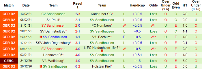 Thật vậy, Sandhausen thường tỏ ra ‘run rẩy’ khi phải làm khách. Họ thua tới 9/10 trận sân khách thuộc khuôn khổ Bundesliga 2. 5 lần làm khách gần nhất, Sandhausen toàn thua. Họ thậm chí phải nhận từ 2 bàn thua trở lên trong chuỗi 5 thất bại trên sân khách vừa rồi.