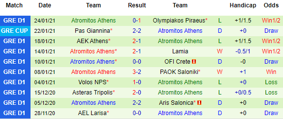 + Thống kê 10 trận gần nhất của Atromitos
