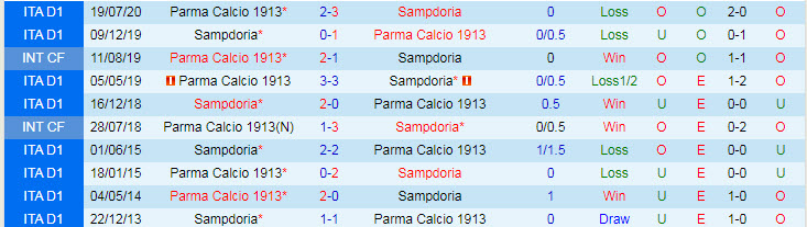 Phong độ và thống kê đối đầu Parma - Sampdoria gần đây: