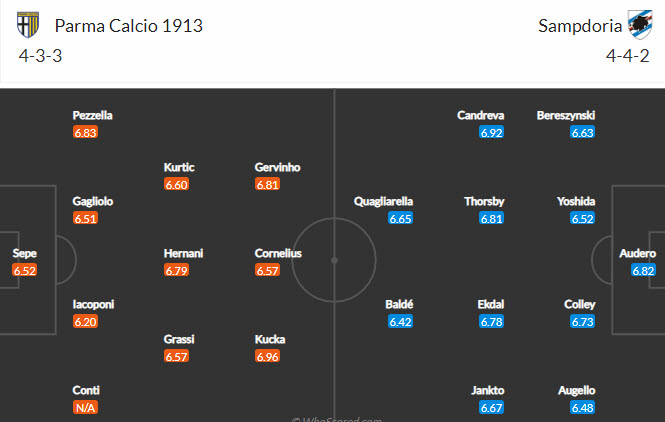 Dự đoán tỷ số Parma 0-0 Sampdoria
