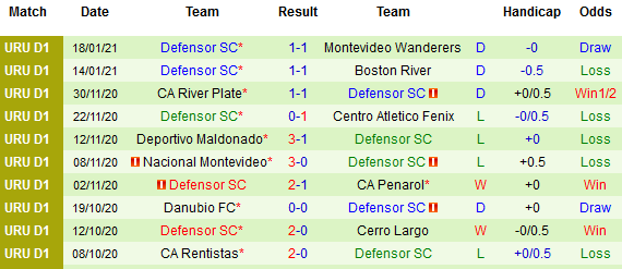 Liên tiếp 4 vòng gần nhất đều bất bại, trong đó có 3 chiến thắng là thành tích đáng hy vọng với đội chủ nhà. Trong khi đó, Defensor ngày càng đuối sức. Đội khách liên tiếp mất điểm cả 6 trận gần đây.