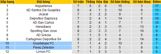 Trong khi Pérez Zeledón đang đứng áp chót bảng xếp hạng với 6 điểm sau 7 vòng đấu, bằng điểm với đội bét bảng Limón nhưng hơn về hiệu số bàn thắng thì Guadalupe cũng chỉ có nhiều hơn 1 điểm và đứng ngay trên đối thủ ở vị trí thứ 10.