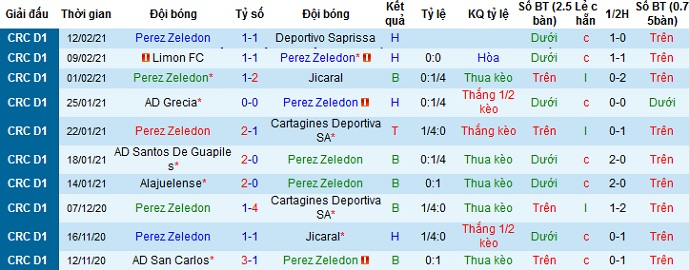 + Thống kê 10 trận gần nhất của Pérez Zeledón