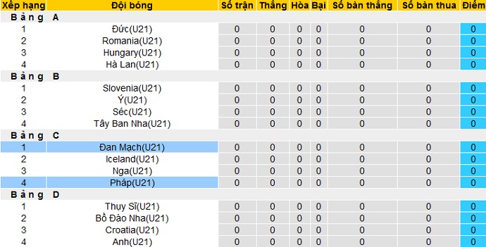 Bảng xếp hạng EURO U21