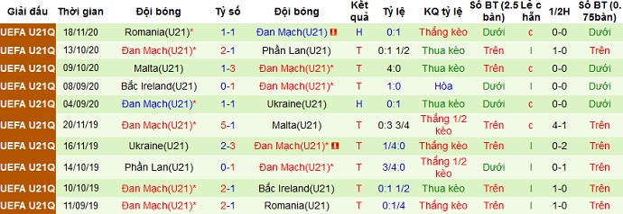 + Thống kê 10 trận gần nhất của Đan Mạch U21