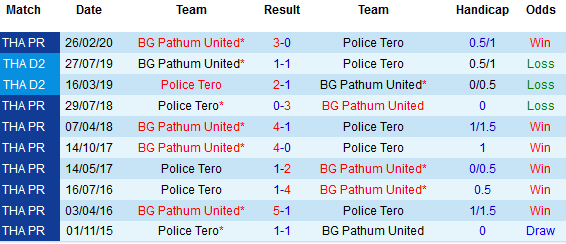 + Lịch sử đối đầu Police Tero vs Pathum United
