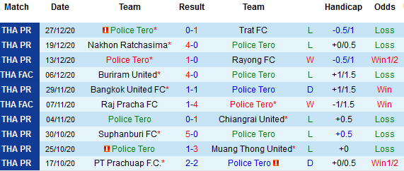 + Thống kê 10 trận gần nhất của Police Tero