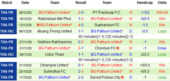 + Soi tỷ lệ kèo châu Á: Cùng với thành tích đáng nể về mặt chuyên môn, Pathum United cũng là điểm đến ưa thích của dân chơi châu Á khi họ đã tích lũy được 81.25% số trận thắng tỷ lệ từ đầu mùa.