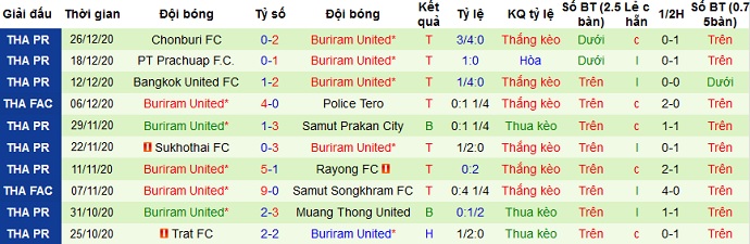 Sau trận thua trước Samut Prakan City hồi cuối tháng 11 năm ngoái, Buriram United đang toàn thắng trong cả 4 trận gần nhất. Trên sân khách đội bóng cũng đang bất bại trong cả 5 lần du đấu gần đây với 1 trận hòa và 4 trận thắng gần nhất.