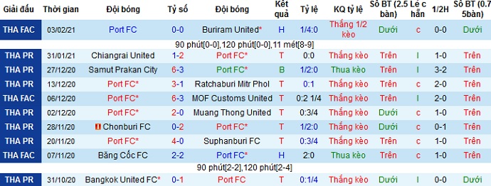 + Thống kê 10 trận gần nhất của Port FC