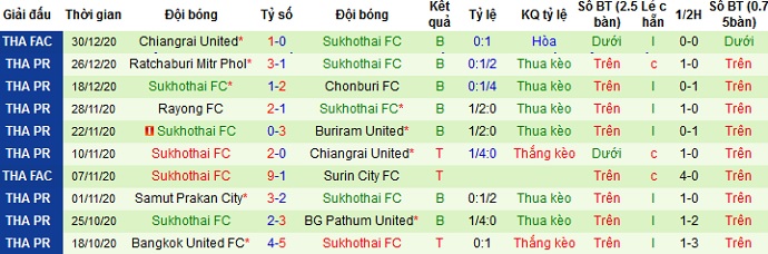 + Thống kê 10 trận gần nhất của Sukhothai FC