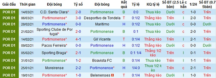 + Soi tỷ lệ kèo châu Á: Mặc dù được chơi trên sân nhà nhưng phải tiếp đón đối thủ ở đẳng cấp cao hơn nên Portimonense vẫn bị đánh giá là đội cửa dưới. Không những thế kèo chấp còn ở mức rất cao khi lên đến +1,25.