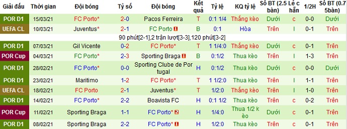 Trong 5 lần gặp nhau gần nhất giữa hai đội, FC Porto vẫn đang chiếm ưu thế tuyệt đối khi toàn thắng ở cả 5 trận. Thế nên cơ hội để đội chủ nhà có điểm gần như là không có. Ngoài ra các cầu thủ FC Porto còn thi đấu với tâm lý hưng phấn nên có lẽ chọn cửa trên ở trận đấu này vẫn an toàn hơn.