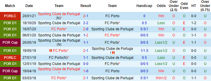 Porto có thành tích đối đầu tốt trước Sporting Lisbon. Trong vòng 52 lần chạm trán Sporting Lisbon từ năm 2003, Porto bất bại 38 lần với 20 chiến thắng và 18 trận hoà. Trên sân nhà, 25 lần tiếp đón Sporting Lisbon trước đây, Porto thắng 16, hoà 4 và chỉ để thua 25 trận. Thế nhưng ở lần tái đấu sắp tới, Porto lại không hứa hẹn vào khả năng có điểm dù sở hữu lợi thế về mặt sân bãi.