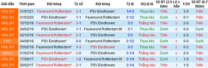 + Lịch sử đối đầu PSV Eindhoven vs Feyenoord