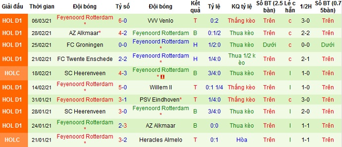 Điều đáng nói là trong 6 lần đối đầu gần nhất Feyenoord vẫn đang bất bại trước đối thủ với 3 trận thắng và 3 trận hòa. Thế nên cho dù Feyenoord không có được phong độ cao nhưng vốn là khắc tinh của đội chủ nhà, rất có thể Feyenoord sẽ vẫn lại có điểm ra về.