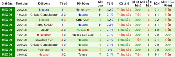 Tuy nhiên ở các lần chạm trán trước đó thành tích của hai đội lại khá thất thường. Thế nên tuy Necaxa chưa có được phong độ tốt nhất nhưng chọn cửa dưới ở trận đấu này có lẽ vẫn an toàn hơn.