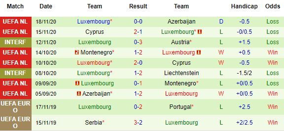 + Thống kê 10 trận gần nhất của Luxembourg