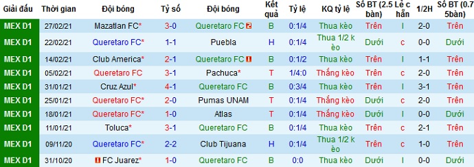 + Thống kê 10 trận gần nhất của Querétaro