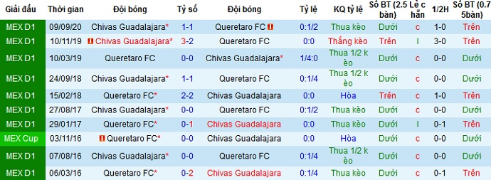 + Lịch sử đối đầu Querétaro vs Guadalajara Chivas