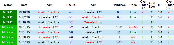 Phong độ và thống kê đối đầu Queretaro vs San Luis