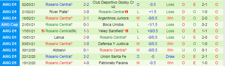 + Thống kê 10 trận gần nhất của Rosario Central