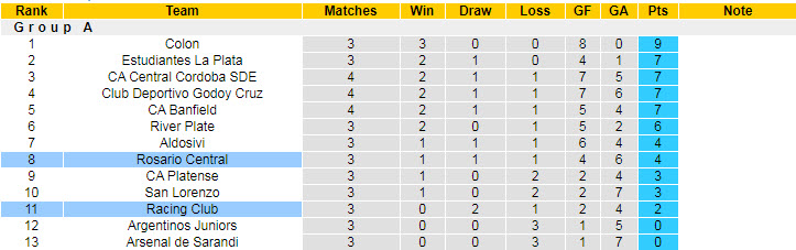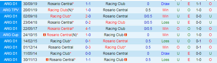 Phong độ và thống kê đối đầu Racing Club - Rosario Central gần đây: