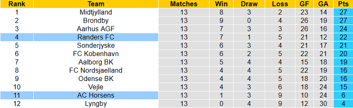 Trong khi đó, Horsens vẫn chưa thể tìm lại được sự ổn định. Họ toàn thua 3 vòng vừa qua và rơi xuống vị trí áp chót trên bảng xếp hạng.