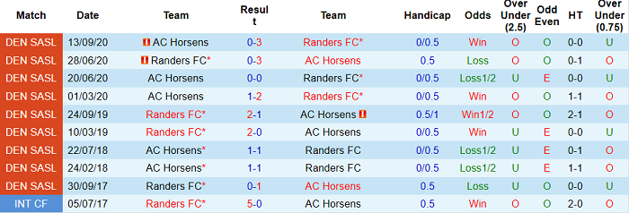 Randers là một trong những chuyên gia thắng kèo của giải VĐQG Đan Mạch. Tỷ lệ thắng kèo của họ tại giải VĐQG Đan Mạch mùa này lên tới 61.54%, cao nhất toàn giải. Trong khi đó, tỷ lệ thắng kèo của Horsens chỉ ở mức 38.64%. Rõ ràng, Randers là cái tên đáng tin hơn.