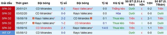 + Lịch sử đối đầu Rayo Vallecano vs Mirandés