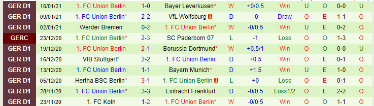 + Thống kê 10 trận gần nhất của Union Berlin