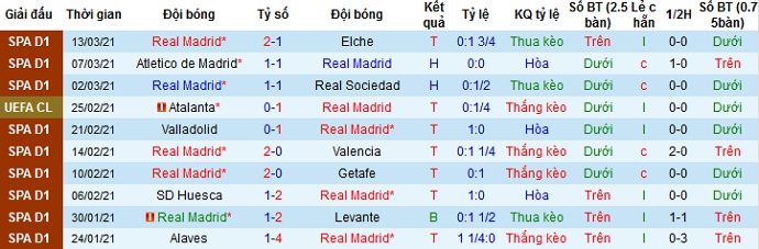 + Thống kê 10 trận gần nhất của Real Madrid