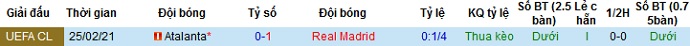 Tỷ lệ kèo Real Madrid vs Atalanta