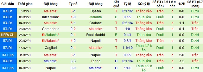 + Thống kê 10 trận gần nhất của Atalanta