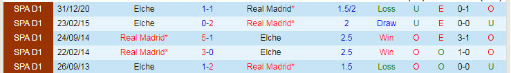 Phong độ và thống kê đối đầu Real Madrid - Elche gần đây: