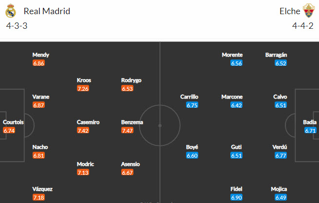 Trở lại với lượt trận cuối tuần này, Real Madrid có trận đấu tiếp đón Elche trên san nhà. Với đội hình có sự trở lại của một số trụ cột sau chấn thương và thêm lợi thế được chơi trên sân nhà, đội bóng Hoàng Gia tự tin sẽ chấm dứt chuỗi trận không thắng.