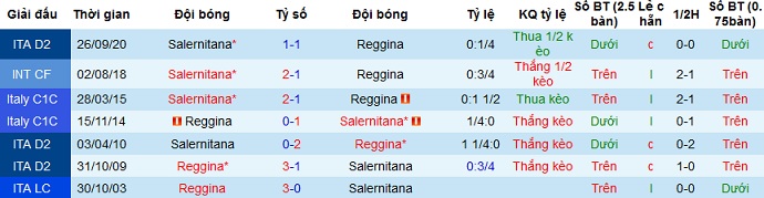 Mặc dù Salernitana đang để thua trong cả 2 lần du đấu gần nhất nhưng đối thủ trong các trận đấu đó lại là 2 đội đang dẫn đầu bảng xếp hạng. Thế nên với việc đang bất bại trước Reggina ở 4 lần chạm trán gần nhất, nhiều khả năng Salernitana vẫn sẽ có điểm ra về ở trận đấu này.