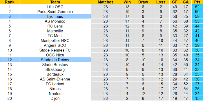 Dẫu vậy, sự ổn định ấy khó giúp Reims giành điểm ở màn so tài sớm nhất vòng 29 Ligue 1 mùa 2020/21. Lý do: đối thủ của họ là Lyon.