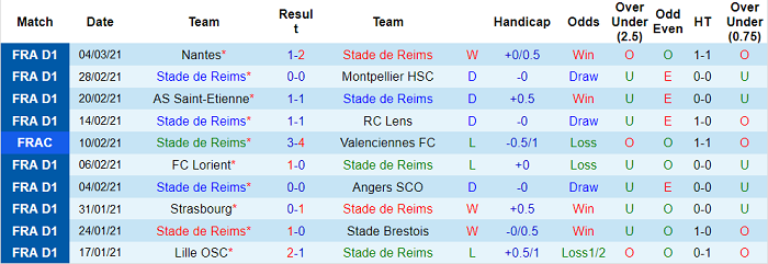 Reims vẫn duy trì được sự ổn định trong một thời gian dài. Bằng chứng: họ bất bại tới 12/14 trận gần đây thuộc khuôn khổ Ligue 1. Trong 12 trận bất bại vừa rồi thì Reims có được 6 chiến thắng.