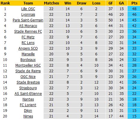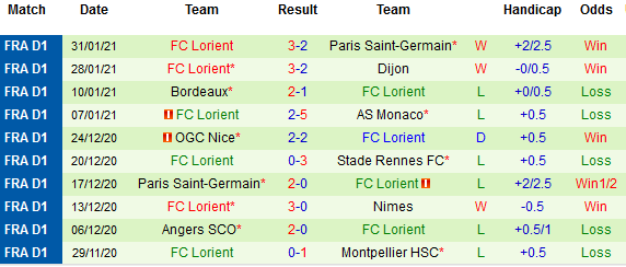 Đội chủ nhà chỉ thua duy nhất Lille với tỷ số tối thiểu trong 8 vòng gần nhất tại Ligue 1, còn lại thắng 5 và hòa 2 là thành tích đáng hy vọng. Trong khi đó, Lorient đã dần đuối sức như hình ảnh thường thấy của một đội mới lên hạng.