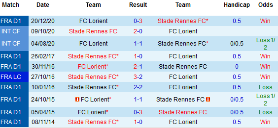 + Soi tỷ lệ kèo châu Á: Trên sàn giao dịch châu Á, Lorient không còn là địa chỉ đầu tư đáng tin cậy cho giới mộ điệu khi họ mới có 38.1% số trận thắng từ đầu mùa. Thành tích tương tự với Rennes là 57.14%.